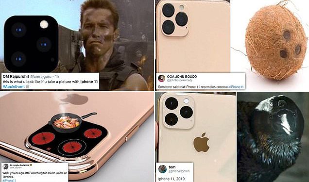 Njëra pretendoi se të tre kamerat e bënë që telefoni t’i ngjante me një arrë kokosi, ndërsa një tjetër e krahasoi dizajnin me një top të futbollit. Disa e krahasuan pajisjen me të huajt me disa foto madje duke postuar fotografi të kamerës të rimenduar si pjanurë kuzhine. Për njerëzit me tripofobi, modeli i ri është një makth i mundshëm dhe disa tifozë të Apple e ndanë tmerrin e tyre në internet. Trifofobia është një frikë ose shmangie ndaj syve të grupimeve të vrimave të vogla.