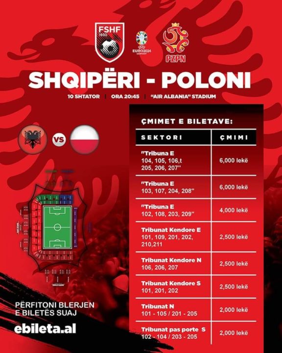 Federata Shqiptare e Futbollit ka nxjerrë në shitje biletat për ndeshjen ndaj Polonisë në “Air Albania”, e cila do të zhvillohet dy muaj më pas, në 10 shtator.