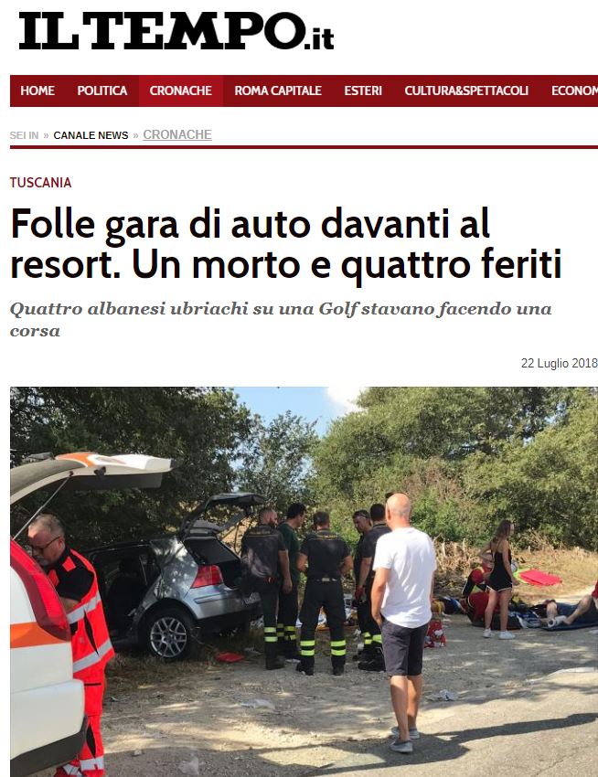 Disa media italiane raportojnë se makina me të cilën lëviznin shqiptarët bëri një manovër për të shmangur një tjetër automjet tip “Smart” para se të përplasej me pemën. Ndërsa të tjera raportime flasin për një garë shpejtësie mes “Golf”-it dhe një tjetër automjeti, ende të paidentifikuar nga Policia. Megjithatë, një hetim ka nga autoritet për zbardhjen e rrethanave të ngjarjes. PANORAMA