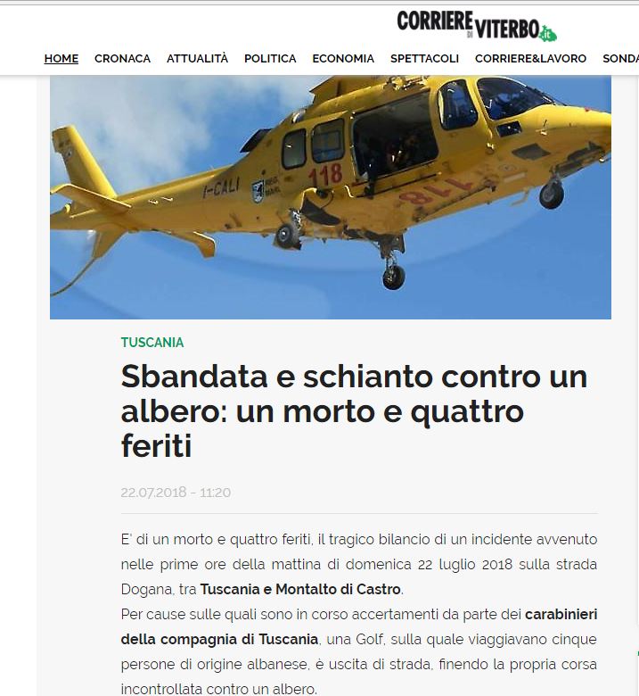 Të pestë po udhëtonin me një makinë tip “Golf” që ka dalë nga rruga dhe është përplasur me një pemë. Incidenti ndodhi në zonën e Viterbos.