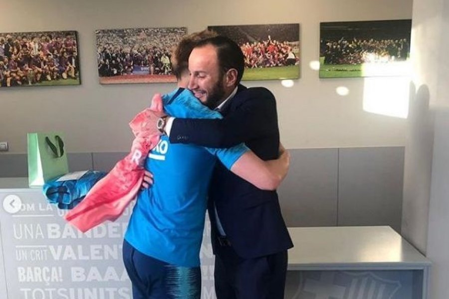Gjatë takimit futbollisti shqiptar i dhuroi “yllit” të Barcelonës fanellën e Kombëtares shqiptare.