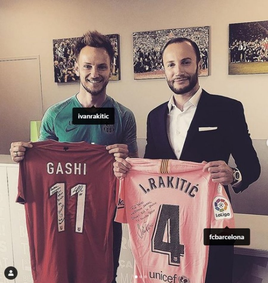Gashi ka një marrëdhënie të shkëlqyer me “yllin” kroat të cilin e ka takuar në ambientet e klubit të Barcelonës. “Faleminderit shumë vëlla @ivanrakitic! Ju uroj vetëm më të mirën për nesër dhe Champions! #Rakitic”, shkroi Gashi në Instagram.