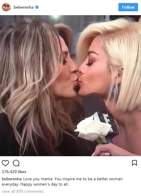 Në rrjetin social Instagram Bebe shfaqet duke u puthur në buzë me mamanë e saj, postim të cilin e ka shoqëruar me një dedikim special.