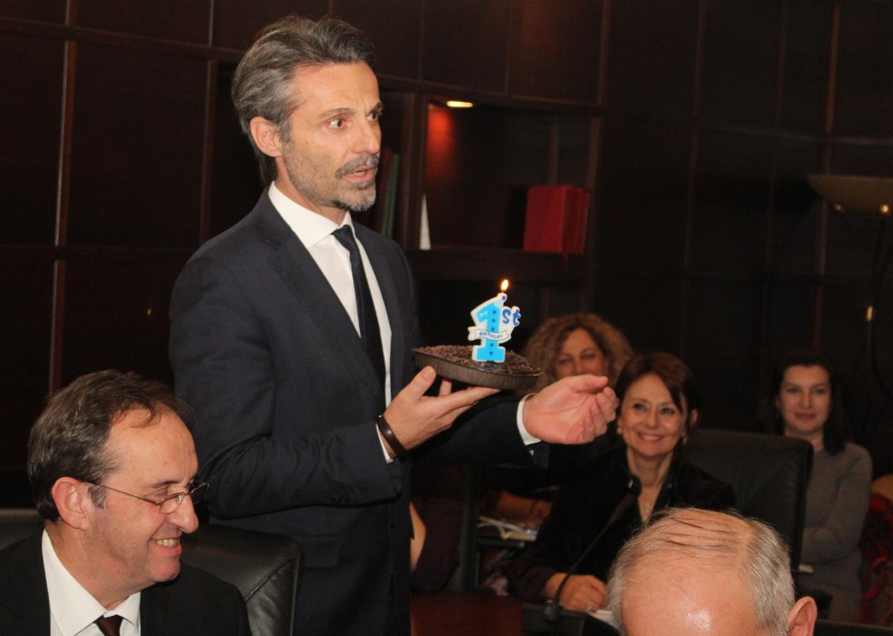 Gazetarët i kanë dhuruar një ëmbëlsirë me një numër 1. Të qeshura dhe urime më pas teksa ka pasur disa momente joformale mes KLP-së dhe gazetarëve.