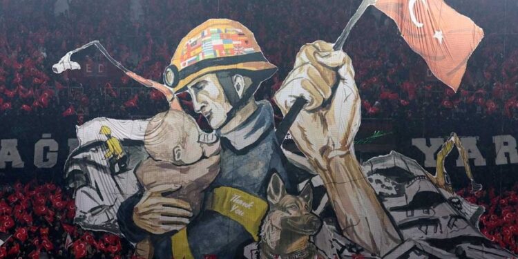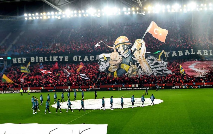 Pas tifozëve të Milan, PSG dhe Borussia Dortmund, ishin tifozët turq të Trabzonsporit që shpalosën një koreografi gjigante në nder të ekipeve të kërkim-shpëtimit që po rrezikojnë jetën për të gjetur të mbijetuar nën rrënoja, pas tërmeteve të fuqishme në Turqi.