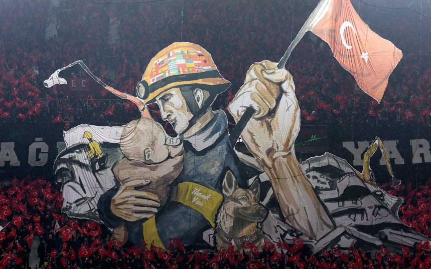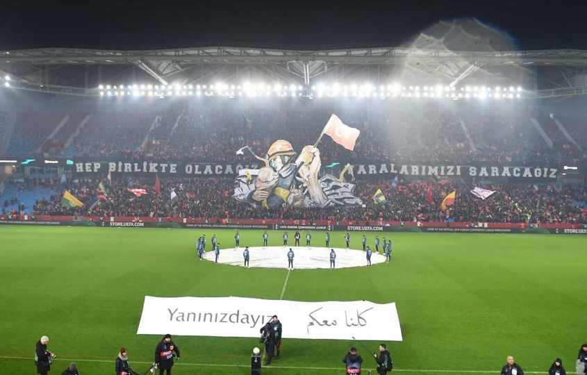 Pas tifozëve të Milan, PSG dhe Borussia Dortmund, ishin tifozët turq të Trabzonsporit që shpalosën një koreografi gjigante në nder të ekipeve të kërkim-shpëtimit që po rrezikojnë jetën për të gjetur të mbijetuar nën rrënoja, pas tërmeteve të fuqishme në Turqi.