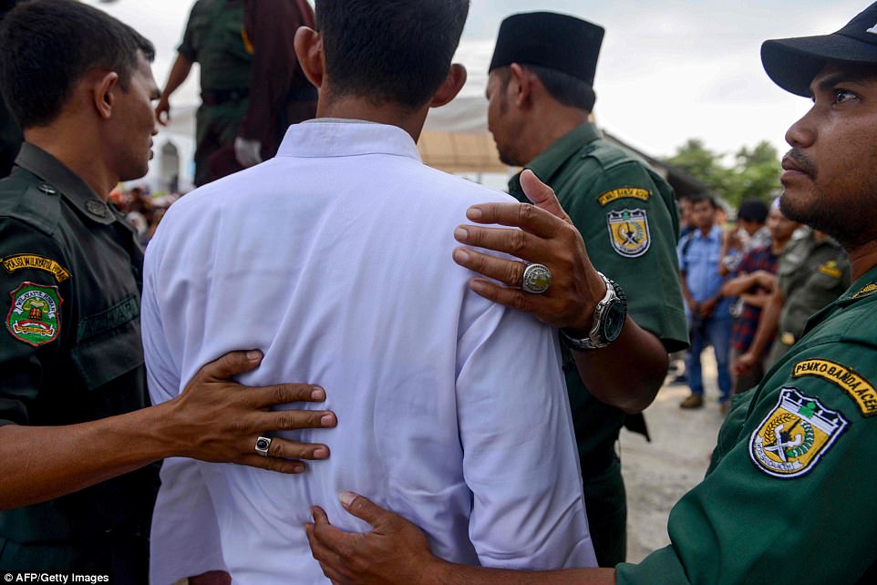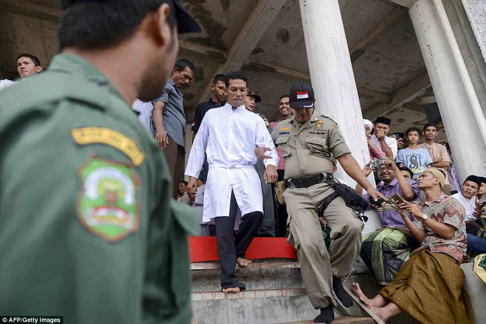 Jono Simbolon pësoi dhimbje të tmerrshme kur një oficer i maskuar goditi shpinën e tij me një shkop në një skenë të improvizuar jashtë një xhamie në kryeqytetin Banda Aceh.