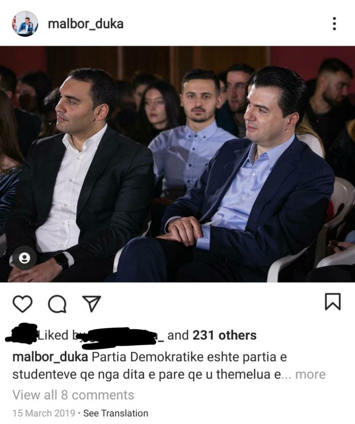 Por ne fakt, faktet tregojne se ai po zhvillonte nje takim me strukturat e partise, FRPD. Kete e tregon rasti i meposhtem ku Malbor Duka i pranishem ne takim sot rdhe ne proteste, eshte militant i PD e kete e shpalos edhe ne rrjetet e tij sociale. (Shih foton). Poashtu, strukturat e Bashes e Kryemadhit zhvilluan edhe protesten para MAS diten e sotme.