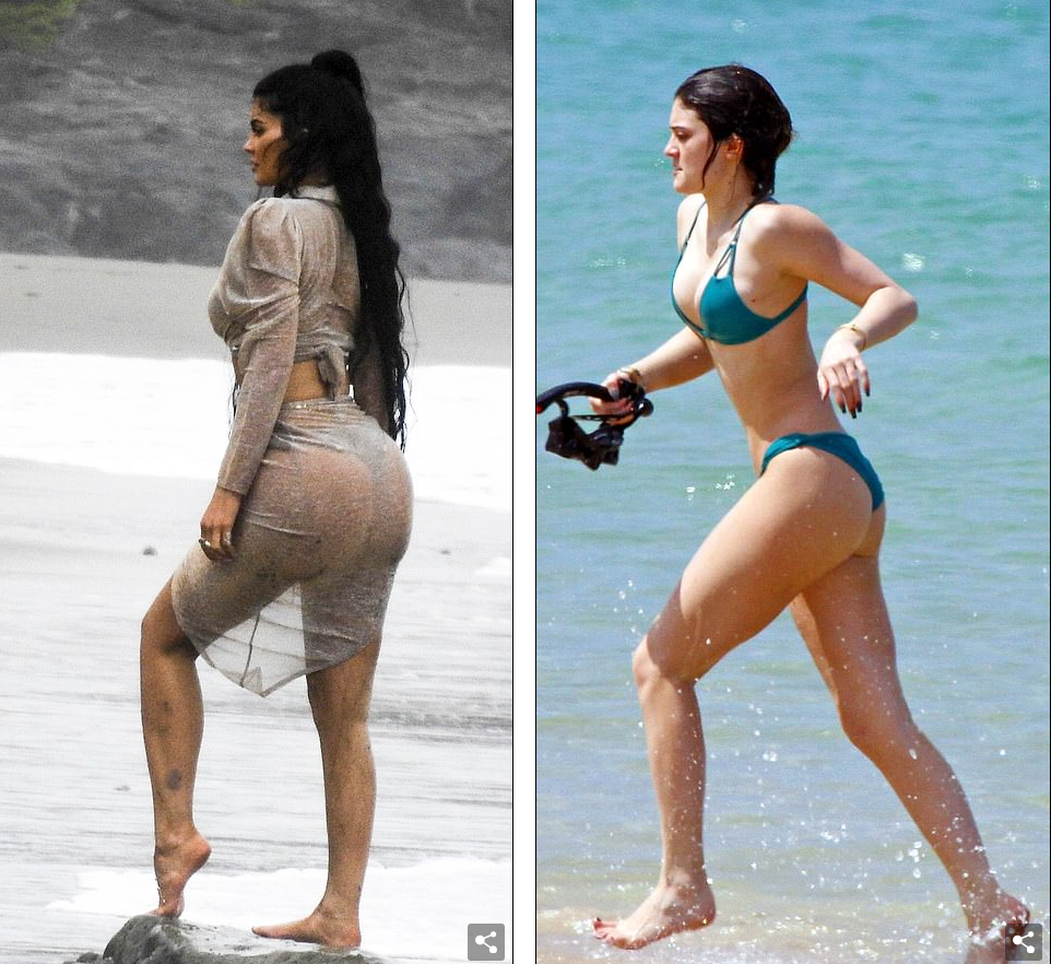 Fotografia me bikini e Kylie Jenner është bërë në vitin 2014 dhe krahasimi duket dhe kjo tregon që 21-vjeçarja nuk i ka shpërtuar ndërhyrjeve për të pasur këto forma.