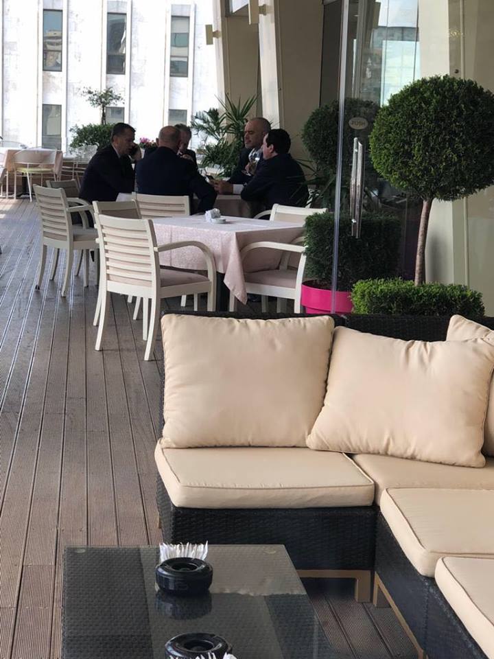 Ndërkohë që në gjykatë zhvillohen masat e sigurisë për protestuesit e Kalimashit, kryeministri Edi Rama është fotografuar duke konsumuar një kafe në një nga lokalet e Tiranës.