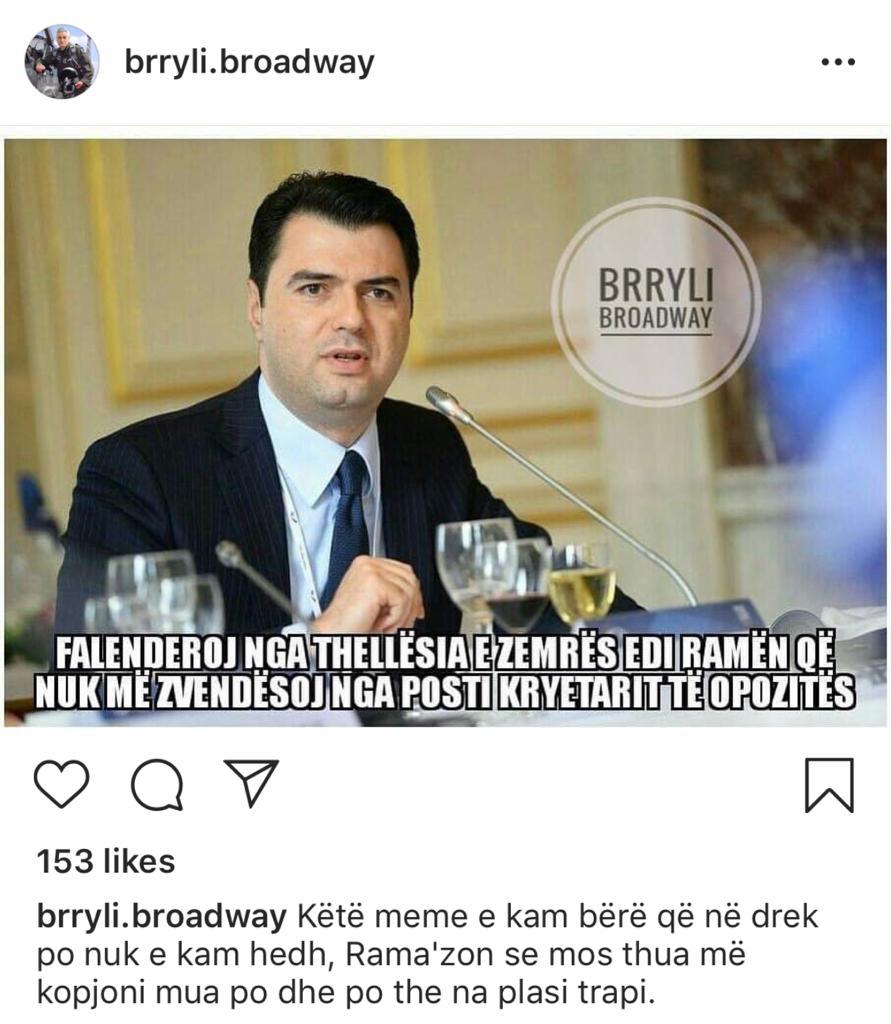 Rrjeti nuk i ka kursyer thumbimet, lidhur me shkarkimin nga ana e Ramës së disa ministrave dhe zëvenmdësimin e tyre. Mes memeve që kanë qarkulluar është edhe ajo e Bashës, në të cilën ironizohet kreu i PD që falenderon Ramën që nuk e shkarkoi si kryetar të opozitës.