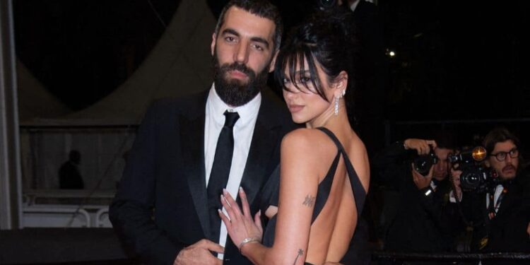 Romain, i cili është një regjisor, ishte i veshur me një këmishë të gjelbër të errët, ndërsa kishte gjithashtu një fashë të mbështjellë rreth njërit prej gishtave. Dua gëzon një marrëdhënie të ngushtë me prindërit e saj dhe shpesh poston foto me ta në rrjetet sociale.