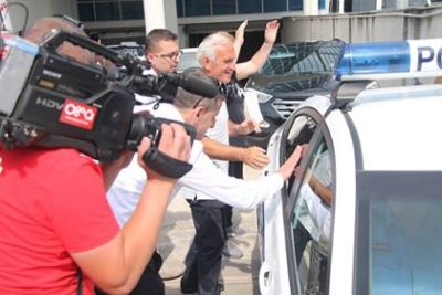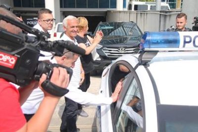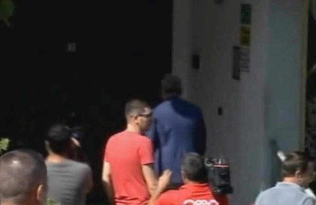 Edhe pse ai tentoi t’i shpëtonte vëmendjes së mediave, mbështetësit e tij e kanë duartrokitur dhe e përshëndeten me dorë përmes xhamit.