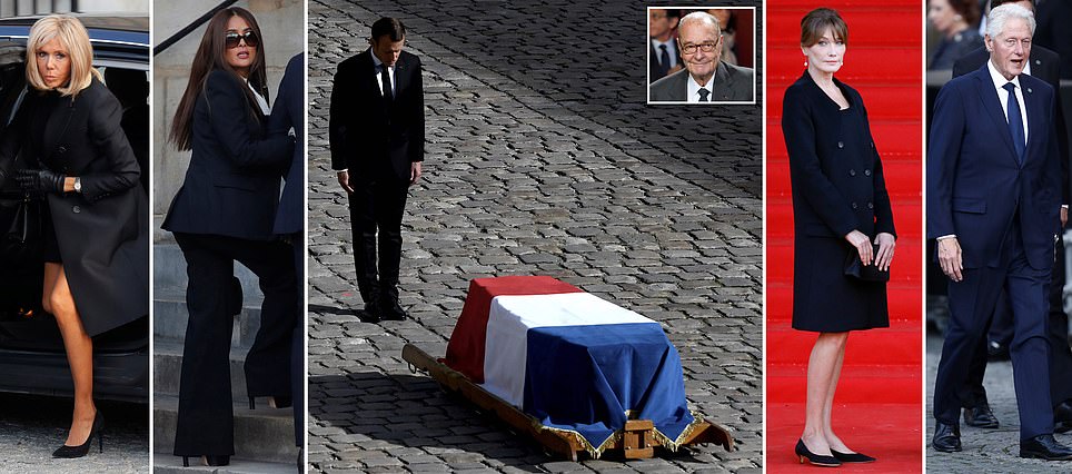 Drejtuesit botërorë të së kaluarës dhe të sotëm, përfshirë Vladimir Putinin, Bill Klintonin dhe Nicolas Sarkozy ishin në mesin e zisë në kishën Saint-Sulpice së bashku me vajzën e Chirac Claude dhe familjen e saj.