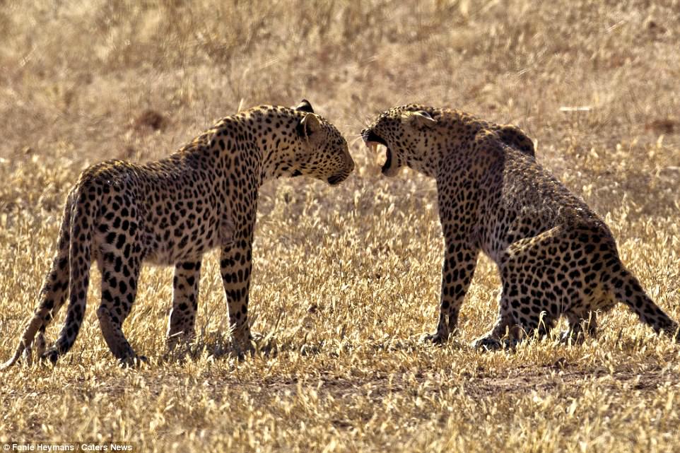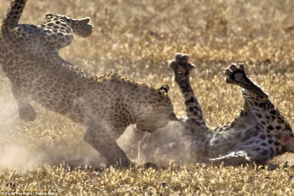 Fanie Heymans, 52 vjeç, ka fiksuar këto foto të pabesueshme, të cilat tregojnë dy leopard femra që luftonin për territoret e tyre.