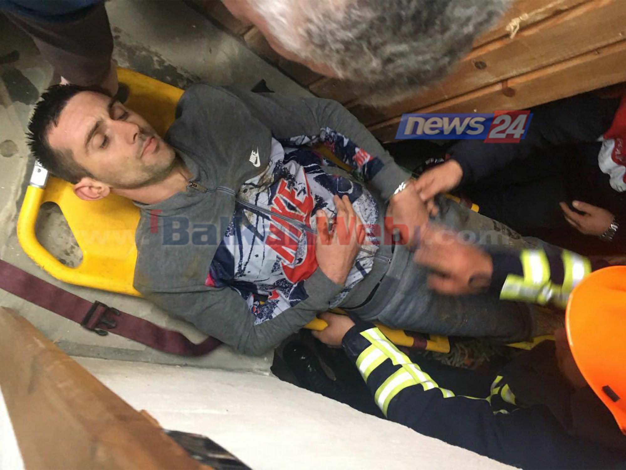 Ai shihet i shtrirë në një barelë, me duar e këmbë të mbledhura dhe i mbuluar me baltë. Me sa duket Ahmeti mund të ketë marrë ndonjë dëmtim të lehtë në trup gjatë futjes në pus.