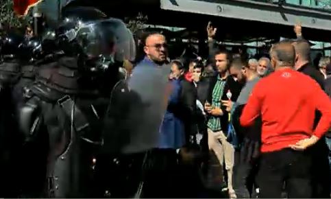 Dhjetëra militantë të opozitës kanë tentuar të bllokojnë blindat e policisë në pedonalen pranë Kuvendit.