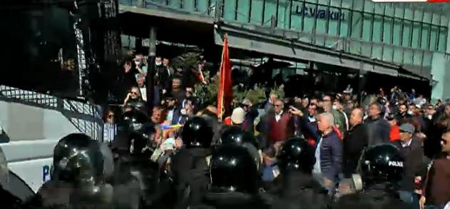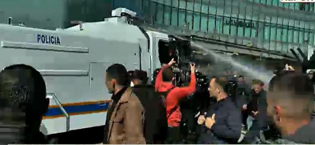 Ata kanë shpërndarë përmes ujit me presion turmën, për të vijuar më tej para Kuvendit.