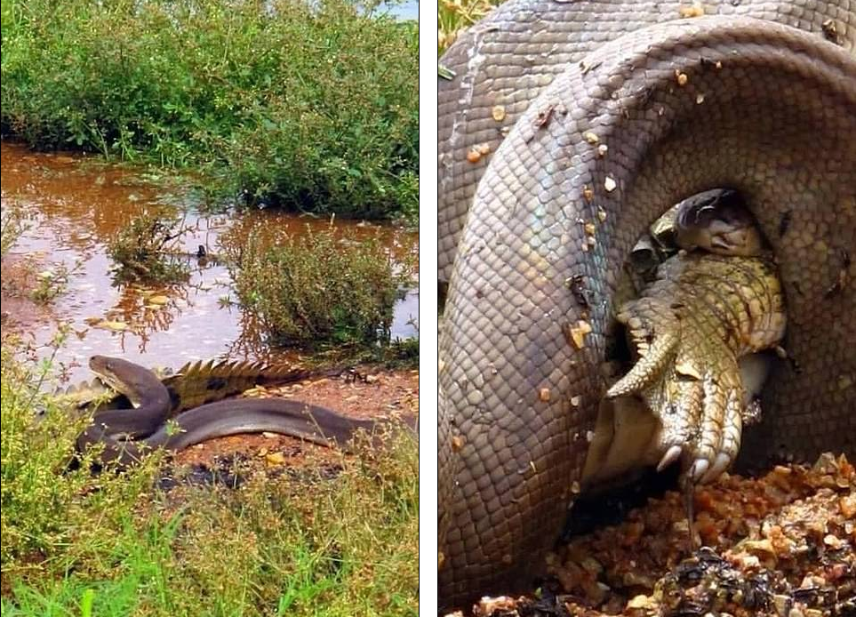 Ngjarja ndodhi në një moçal në Australi dhe nga fotot e shkrepura duket se si gjarpri gllabëron krokodilin e ujërave të ëmbla ndërsa pjesa tjetër e gjatësisë së saj muskulore ngërthen rreth bishës në Queensland.