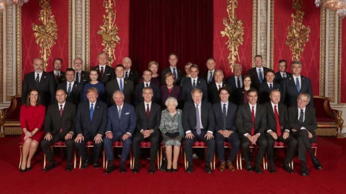 Në qendër të fotografisë së përbashkët qëndron Mbretëresha Elizabeth II, Princi Filip i Anglisë, Sekretari i Përgjithshëm i NATO Jens Stoltenberg si dhe të gjithë krerët e shteteve anëtare të Aleancës si presidenti amerikan Donald Trump, presidenti francez Emmanuel Macron, kancelarja gjermane Angela Merkel, presidenti Turk Rexhep Taip Erdogan etj.