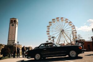 Fotot tregojnë automjetet e vjetra të parkuara pranë mureve të kalasë dhe pranë kullës së sahatit, ku shumë të rinj dhe familje u afruan për t’i parë nga afër. Në disa momente shihen edhe fëmijë që afrohen kureshtarë pranë makinave, ndërsa të tjerë bëjnë foto.