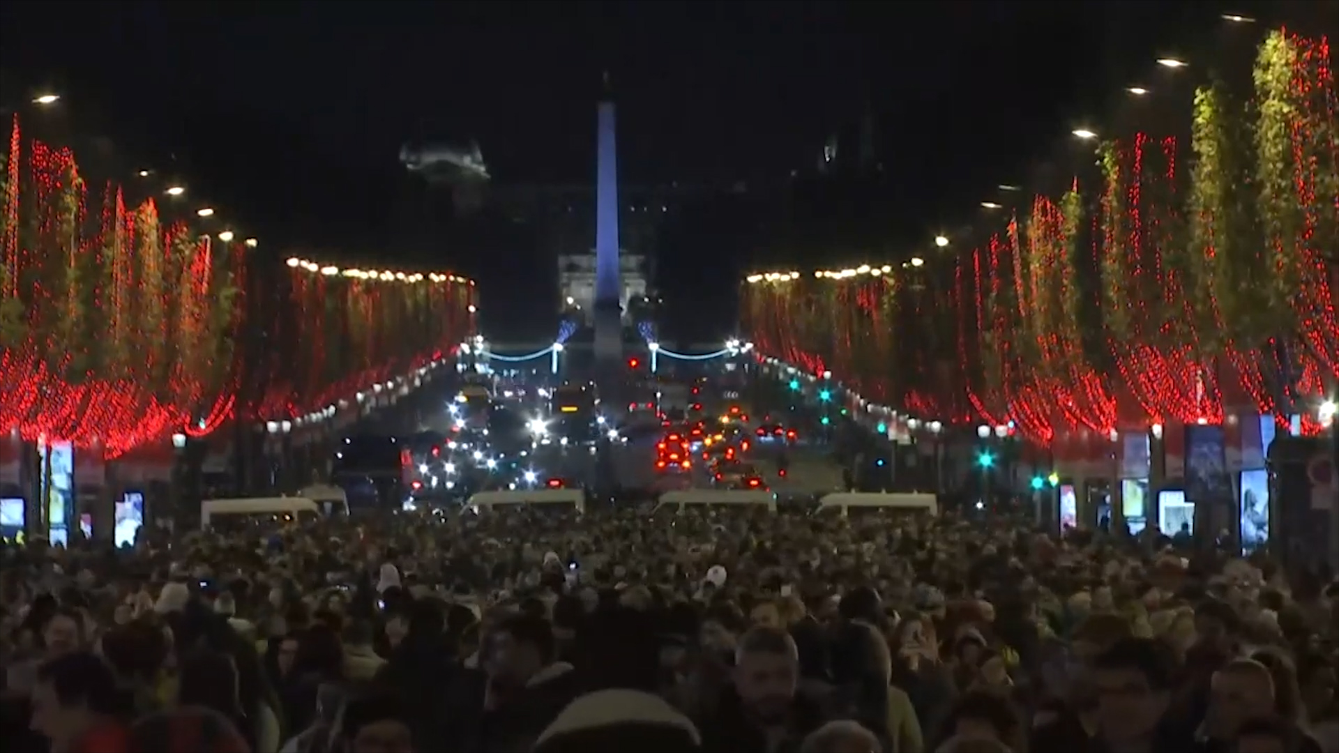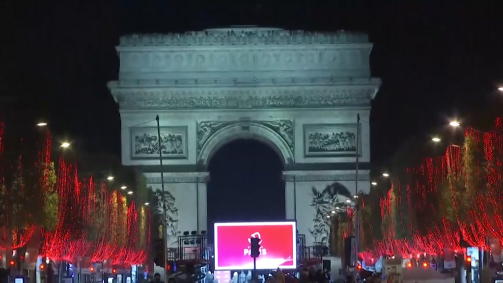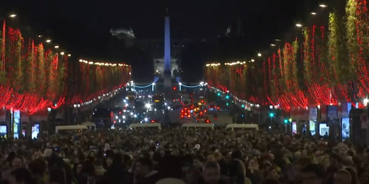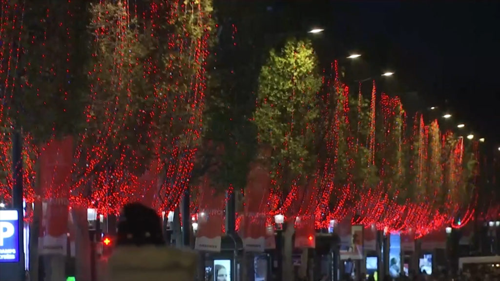 Edhe pse një muaj larg, bulevardi i famshëm u ndriçua nga ditat e kuqe përgjatë rrugës së populluar që çon nga harku i triumfit në sheshin “Concord”.