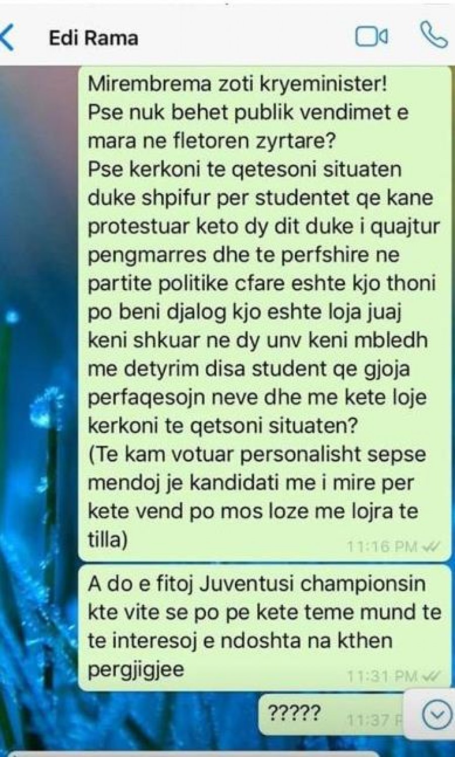 Kryeministri Edi Rama tha sot se deri në orët e para të mëngjesit ka qenë duke komunikuar me studentët lidhur me plotësimin e tarifave.