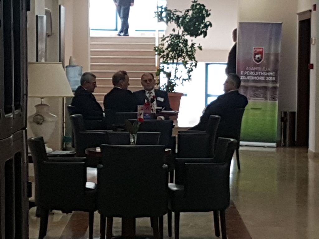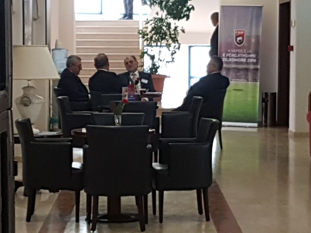 Pas nderprejes per disa minuta te punimeve te Asamblese zgjedhore te FSHF, kandidati Armand Duka dhe Bashkim Fino pas shtrengimit te duarve jane ulur ne kafe me njeri tjetrin.