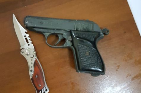 Nga kontrolli fizik që i është ushtruar nga uniformat blu, shtetasit Denis Kuçi i është gjetur një pistoletë “Berreta” dhe një mjet prerës, thikë.