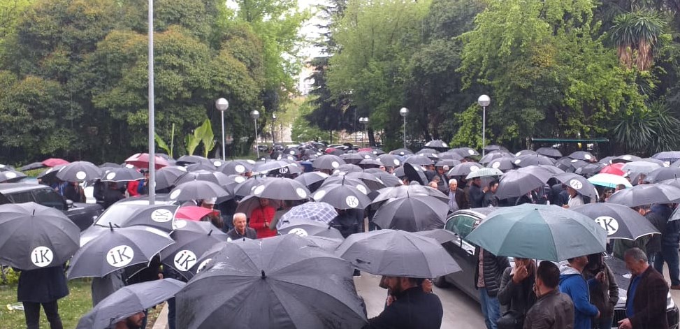 FOTO/ Protestë në shi, PD u jep protestuesve çadra ‘Rama ik’
