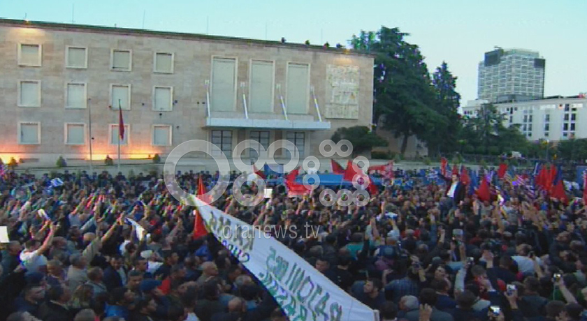 Pëkrahësit e opozitës janë mbledhur përpara kryeministrisë për të protestuar kundër kryeministrit Edi Rama.