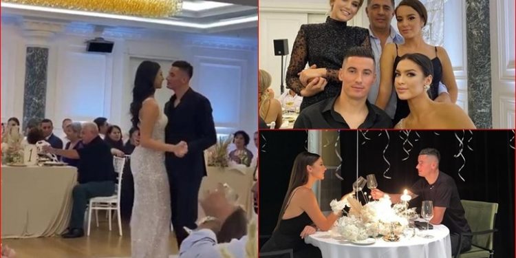 Sipas të ftuarve, e fejuara e futbollistit kuqezi dukej shumë elegante, me një fustan të bardhë me xixa, ndërsa Roshi kishte zgjedhur të vishej me kostum e këmishë të zezë.