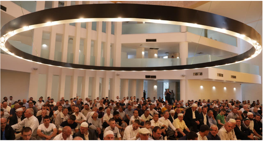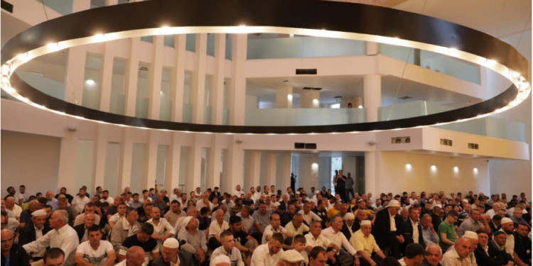 me faljen e besimtarëve për herë të parë në Xhaminë e re të Ballies në Elbasan