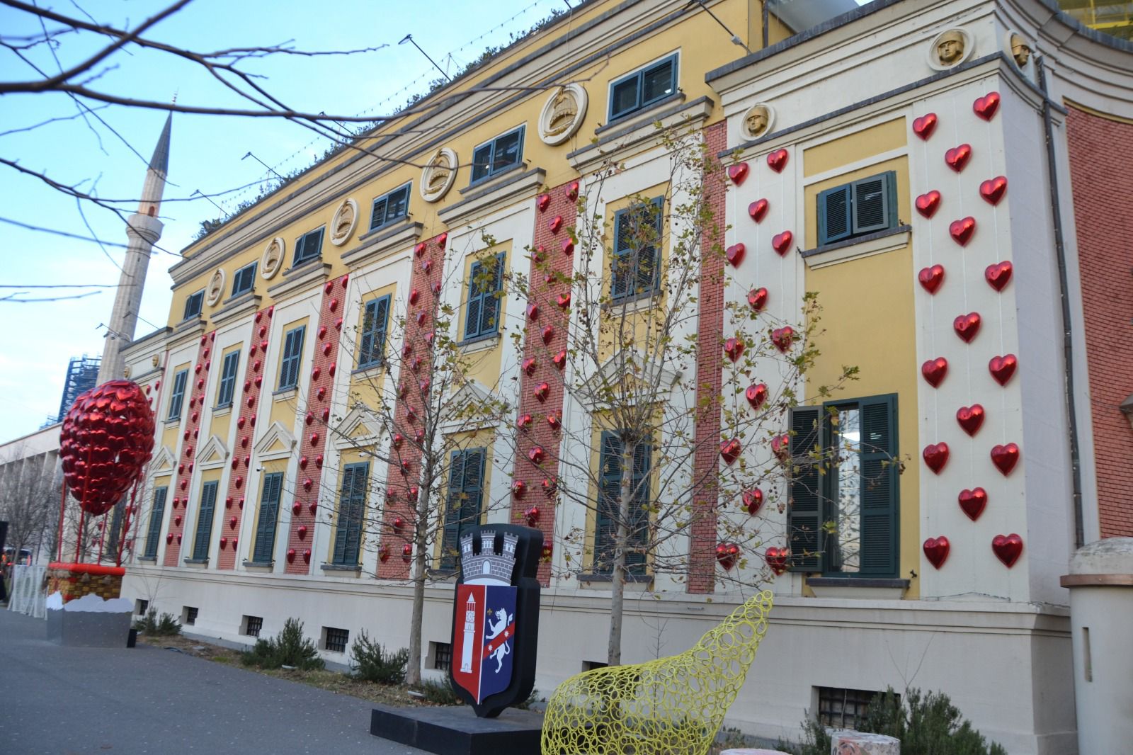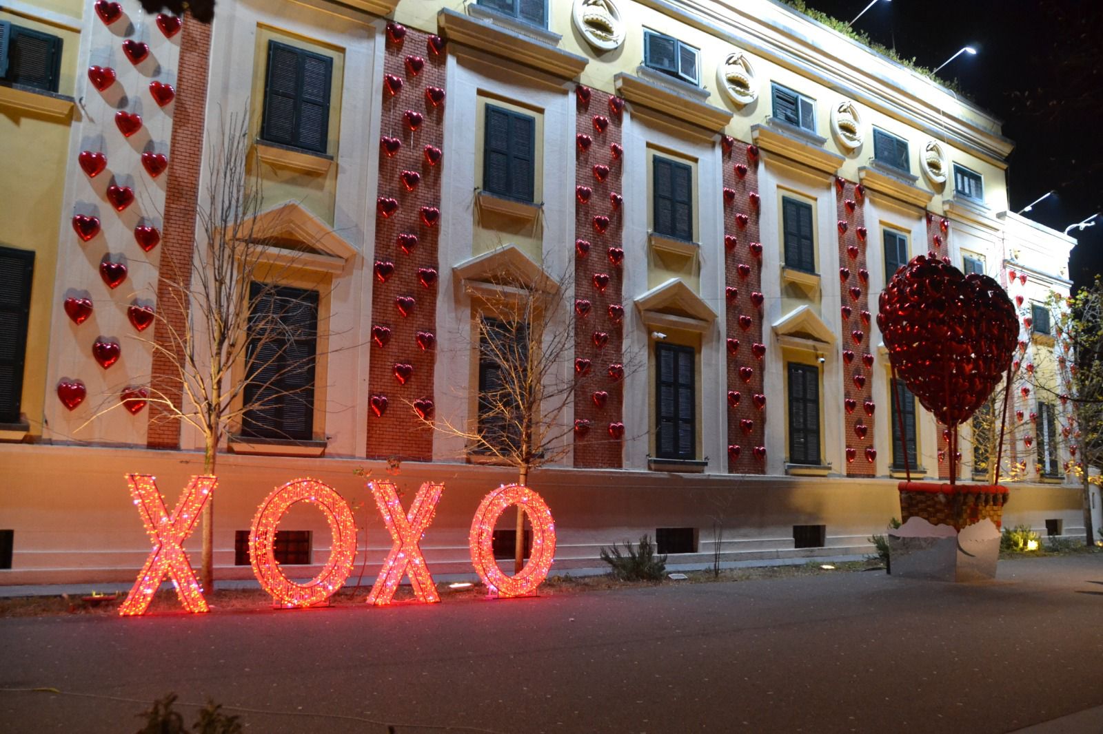 Bashkia e Tiranës është zbukuruar edhe vetë me simbolin e kësaj dite, zemrat e kuqe.