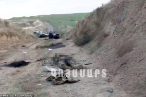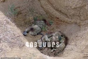 Ministria publikoi gjithashtu imazhe ajrore të kufomave të ushtarëve armenë. Në deklaratë, u raportua se pozicionet e ushtrisë armene u goditën me raketa dhe artileri dhe forcat armene u tërhoqën. “Për shkak të numrit të madh të ushtarëve të plagosur në ushtrinë armene, ka një mungesë hapësire në spitalet ushtarake dhe spitalet civile, ndërsa po jetohet edhe mungesë në rezervat e gjakut. Si gjithmonë, pala armene fsheh numrin e vërtetë të viktimave në ushtri nga njerëzit”, thuhet në deklaratën e Ministrisë.