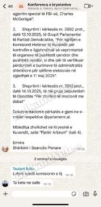 Balla, i cili kishte thirrur më herët deputetët socialistë për t’i orientuar mbi mënyrën e menaxhimit të seancës, ka shpërndarë një mesazh udhëzues për kolegët e tij, por në vend që ta dërgonte në kanalin e brendshëm të komunikimit të grupit parlamentar të PS-së, ai e ka dërguar gabimisht në grupin zyrtar të Konferencës së Kryetarëve, një grup që përfshin drejtues nga të gjitha forcat politike në Kuvend.