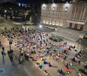 Po ashtu, në seksionin e komenteve të këtij postimi, Balla ka postuar një fotomontazh, ku duket se ekzaktësisht në vendin ku Berisha mban tubimet e tij, po zhvillohet një seancë joga.