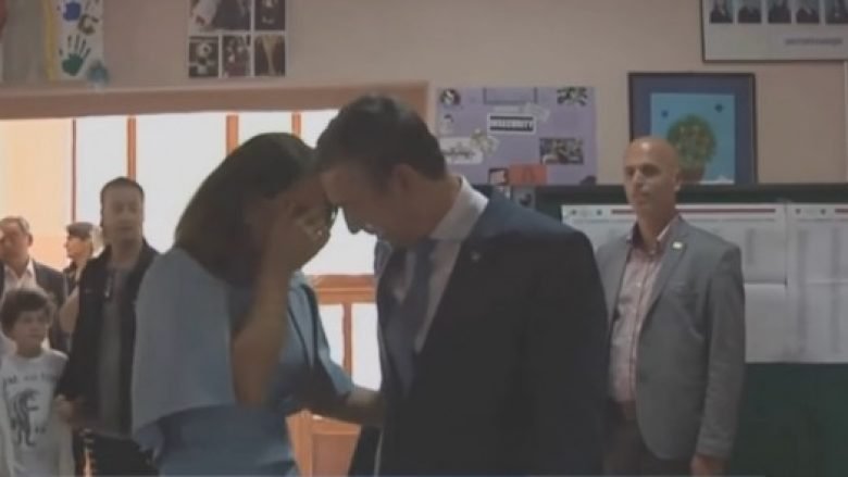 Kryetari i PDK-së Kadri Veseli dhe bashkëshortjja e tij Violeta Veseli, kanë ndarë një moment interesant e te sikletshem në momentin kur ata kishin shkuar për të votuar në shkollën fillore “Faik Konica” në Prishtinë.