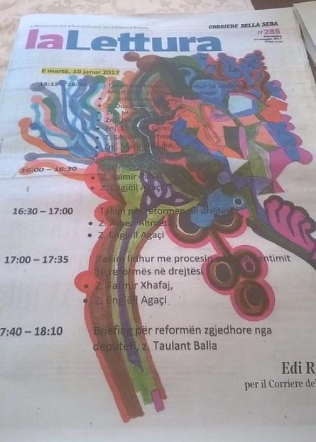 Vizatimi është realizuar mbi axhendën e një dite të ngjeshur pune, 10 Janar 2017, të mbushur me takime për Reformën në Drejtësi dhe atë Zgjedhore.