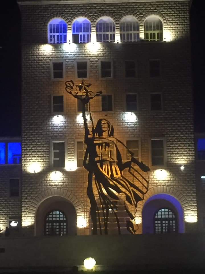 Imazhi i monumentit ‘Nënë Shqipëri’ është shfaqur mbrëmjen e së dielës para Korpusit të Univeritetit të Tiranës.