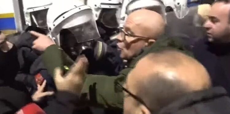 Gent Strazimiri, i njohur si deputeti me kobure, është parë duke u përplasur me policinë në protestën e sotme.