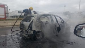 Një makinë është përfshirë nga flakët pranë doganës, por ende nuk dihen shumë detaje mbi shkaqet. Makina e përfshirë nga flakët ka shkaktuar tym në zonë dhe panik në radhët e qytetarëve. Gjendja e tensionuar është ndjerë në radhët e shoferëve të cilët kanë mbetur për disa minuta në radhët e trafikut të krijuar në zonë.