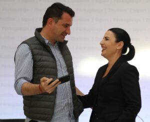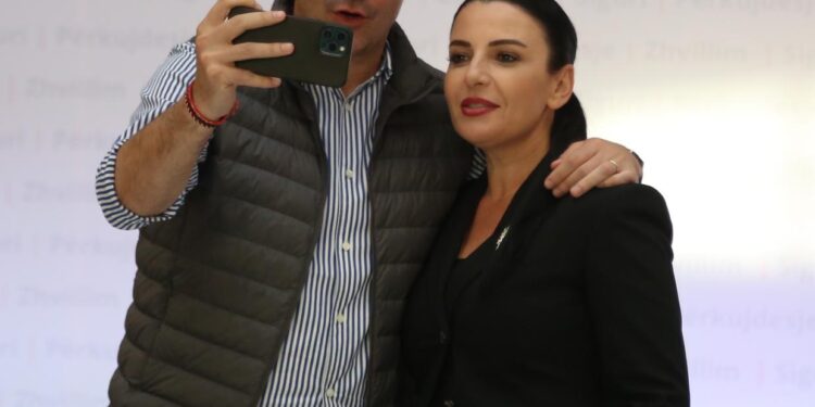 Në këto pamje shihet kryetari i bashkisë së Tiranës, Erion Veliaj dhe ministrja Belinda Balluku, të cilët kanë shfrytëzuar momentin për të shkrepur një selfie.