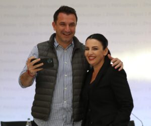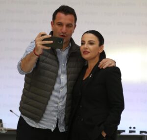 Në këto pamje shihet kryetari i bashkisë së Tiranës, Erion Veliaj dhe ministrja Belinda Balluku, të cilët kanë shfrytëzuar momentin për të shkrepur një selfie.