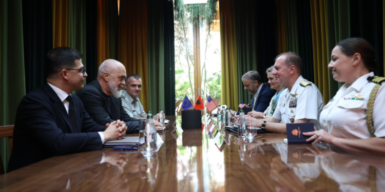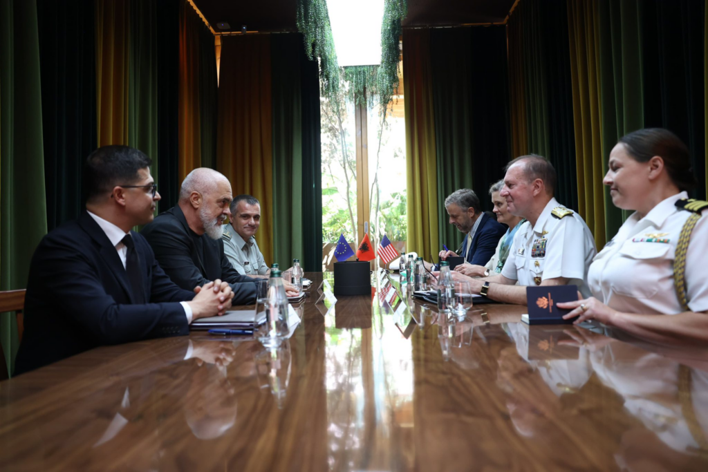 Kryeministri Edi Rama ka ndarë pasditen e sotme, 8 tetor, foto nga takimi me Komandantin e Forcave Detare të Shteteve të Bashkuara në Europë dhe Afrikë, Admiralin Stuart B. Munsch.