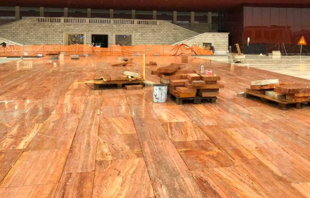 Pasi kanë përfunduar punimet brenda impiantit modern, me kapacitet mbi 22 mijë vende, po punohet edhe në ambientet e jashtme, ku po shtrohen pllaka, për t’i dhënë më shumë hijeshi stadiumit të ri.
