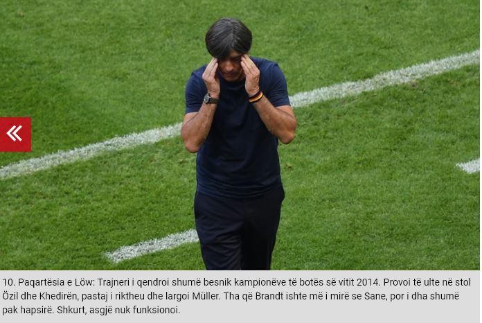 Që kur në Botëror është futur faza e grupeve, Gjermania kishte kaluar gjithmonë. Por këtë herë jo. Kampionët e botës në fuqi i thanë lamtumirë Kupës së Botës, njëlloj siç kishte ndodhur me Italinë dhe Spanjën në tre kompeticionet e fundit. Low e dinte.
