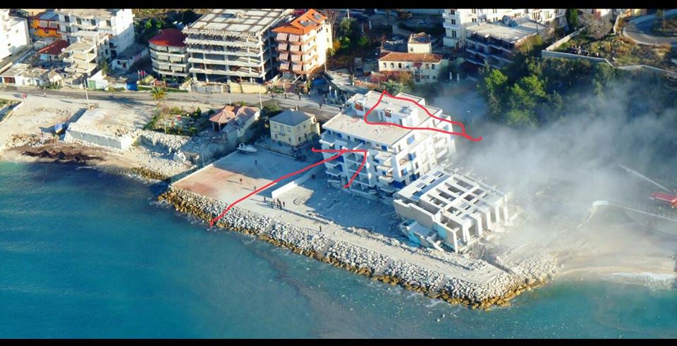 Nëse shohim fotot në fjalë, duket qartë se pallati ishte ndërtuar thuajse brenda në det, jashtë parashikimeve ligjore.