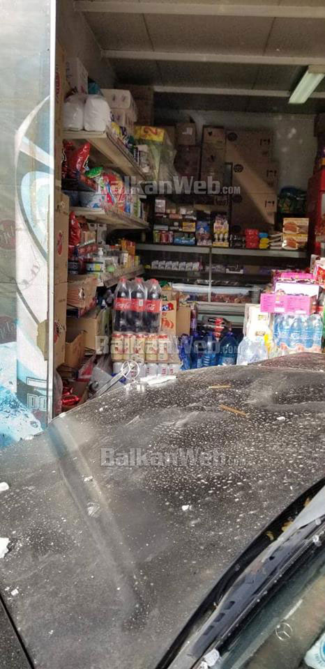 Nga fotot e siguruara nga BalkanWeb duket dhe një prej automjeteve i futur në një market anës rrugës.