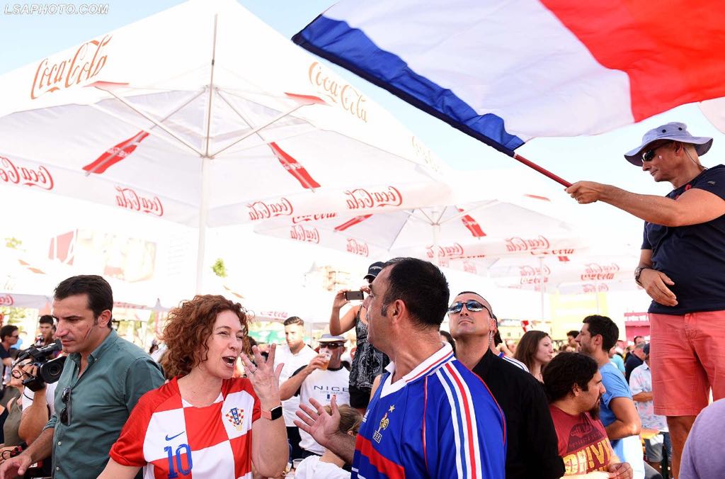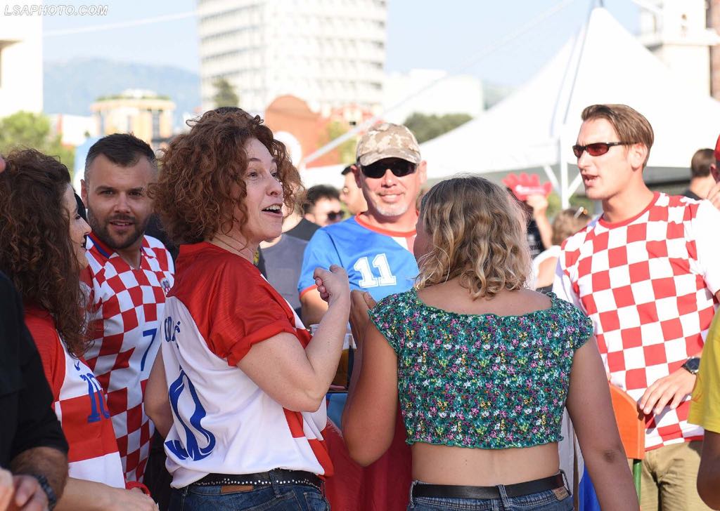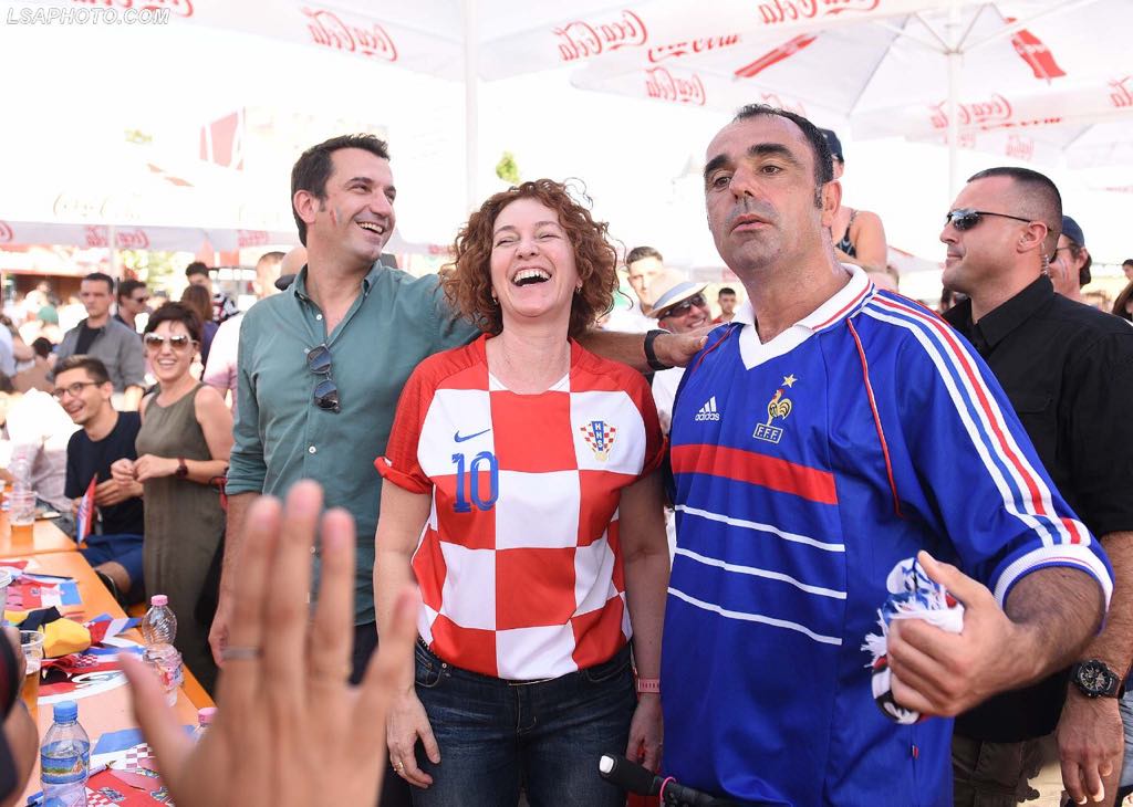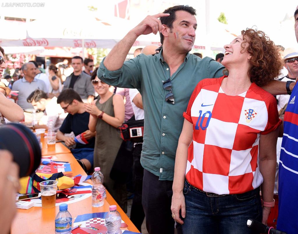 Në sheshin “Skënderbej”, kryetifoze e Kroacisë ishte padyshim ambasadorja e BE-së, Romana Vlahutin. Dhe krahas saj ishte edhe kryebashkiaku Veliaj, pasi kishte stampuar në faqe ngjyrat e flamurit francez. Ka qenë për humor pak nje situate sepse krahas tyre eshte ngaterruar Eduart Selami, me nje tifoz te vjeter tiranas te Frances.